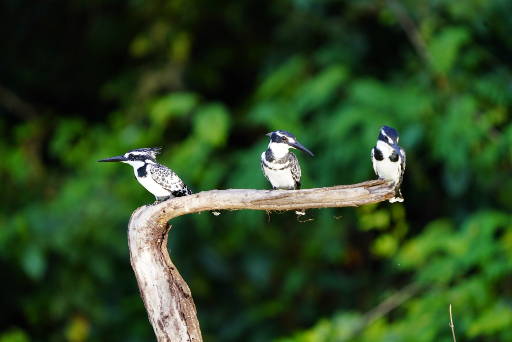These Pied Kingfishers were a hoot to watch, squabbling over branch-space and fish. Of all the trees in the lake, they all wanted this one! I watched in shock and awe as one downed a fish as big as its head. Down the hatch!