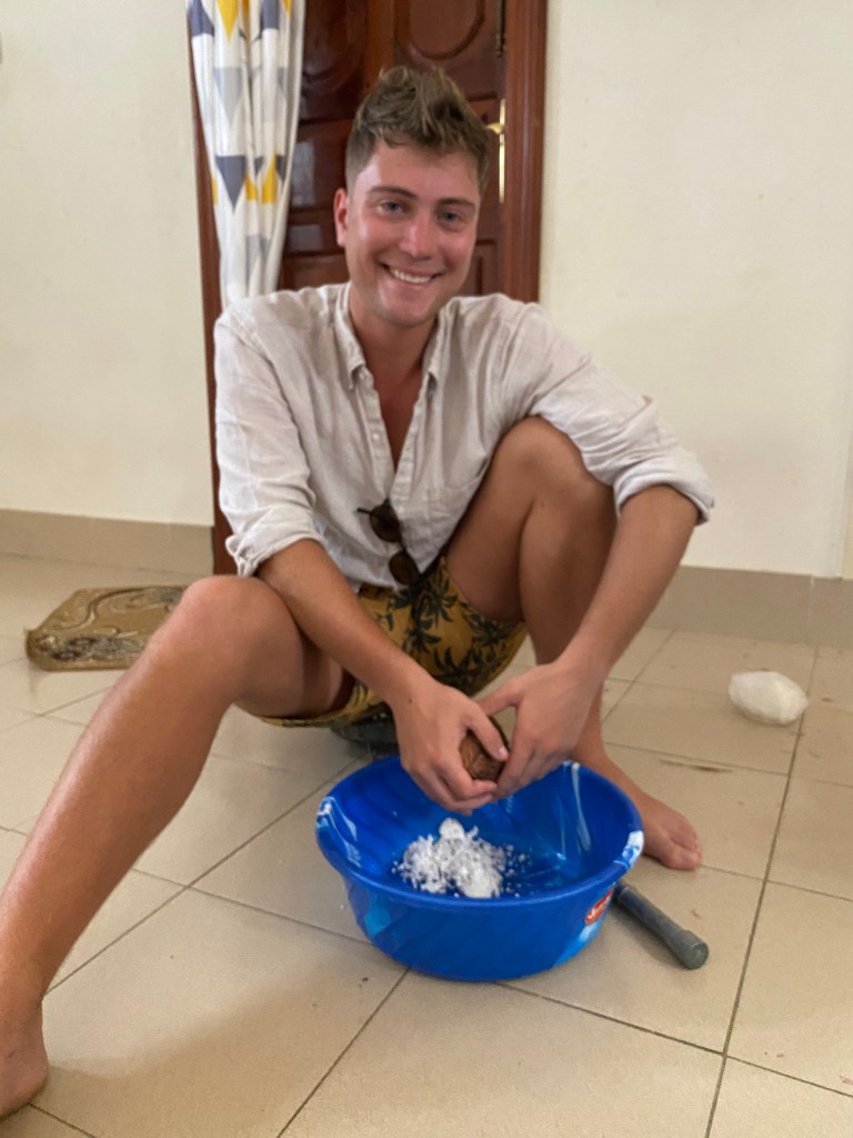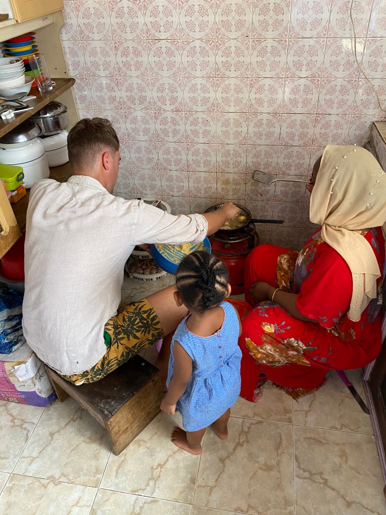 After roughly 4 hours, we had made 5 dishes, chapati, ugali, chutney and Zanzibar spiced tea (cardamom, cinnamon and ginger) — enough food for the whole family! We sat in the living room on a hand-woven mat, and enjoyed the feast we had prepared.
