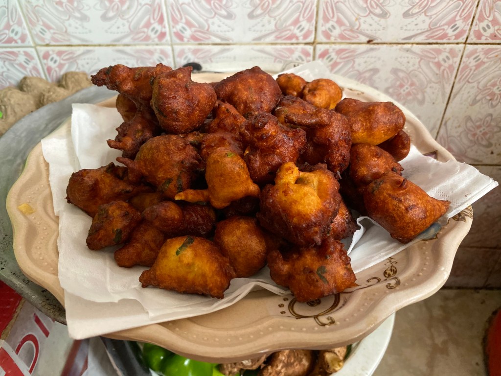 We started with badia (similar to Indian bhajia) which are deep-fried vegetable dough-balls, served with coconut chutney.