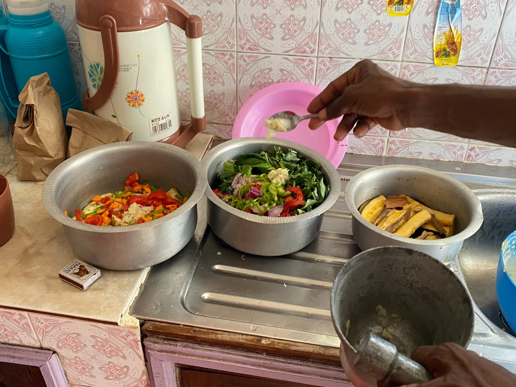 In the market, we picked up a few things they didn’t have at home– bean flour, noodles, some fresh spices— and I curiously tried a red banana. Spoiler: they taste exactly the same as the yellow ones.