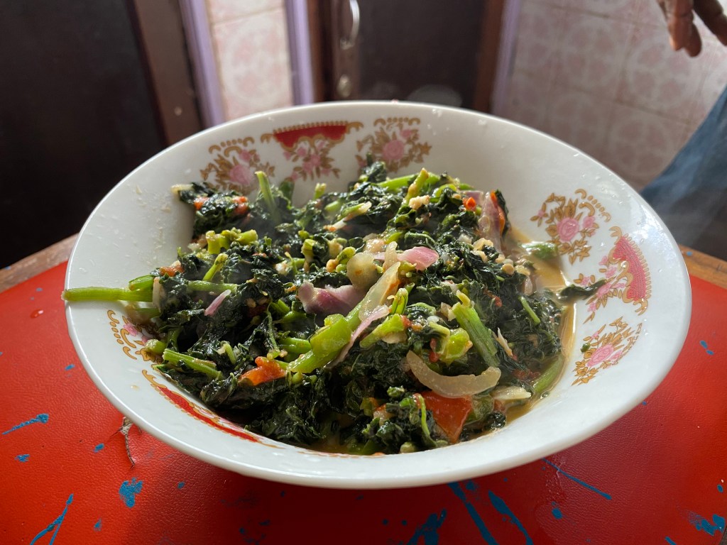 Mchicha: Spinach, onions, red peppers, green peppers, garlic